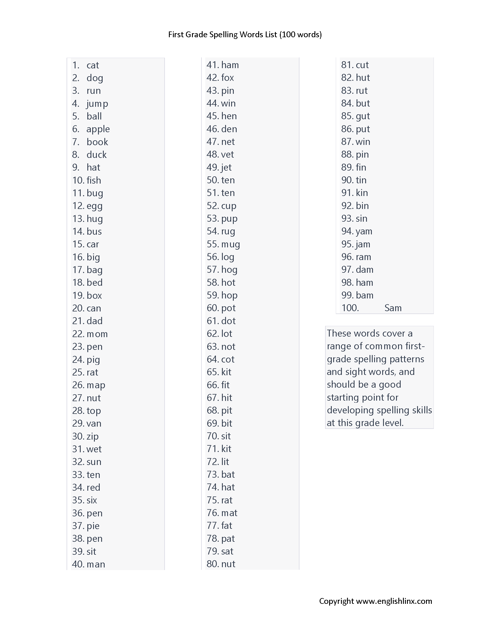 First Grade Spelling Words K5 Learning Worksheets Library