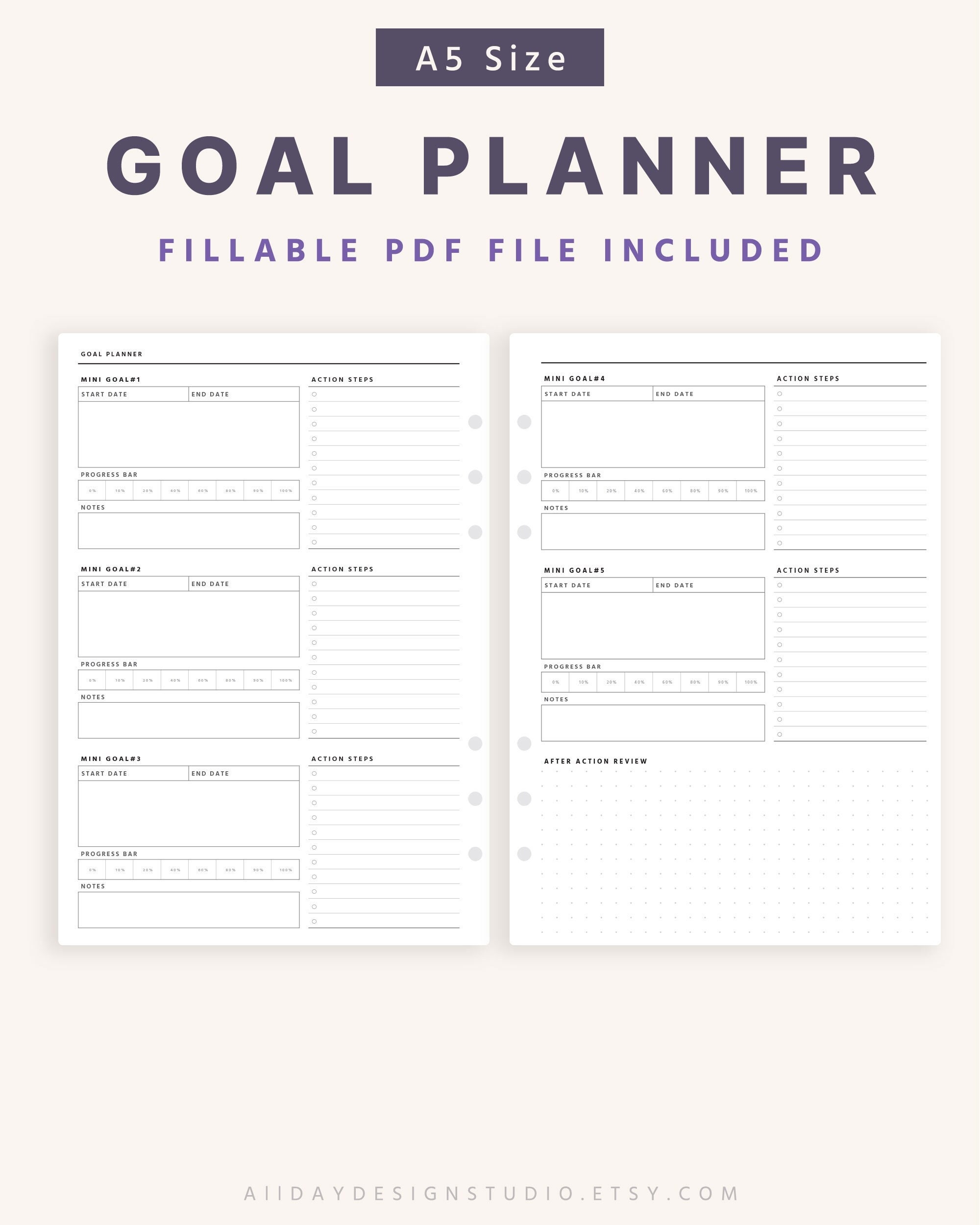 A5 Printable Goal Planner Template Organizer Pages Goal Tracker Goal Planning Worksheet Goal Journal Goal Board Editable PDF Etsy