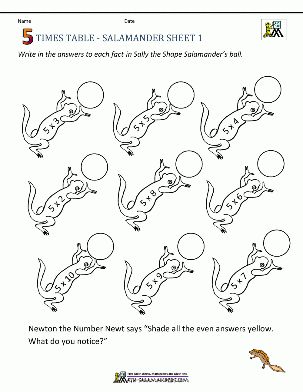 Free Printable 5 Times Table Worksheet