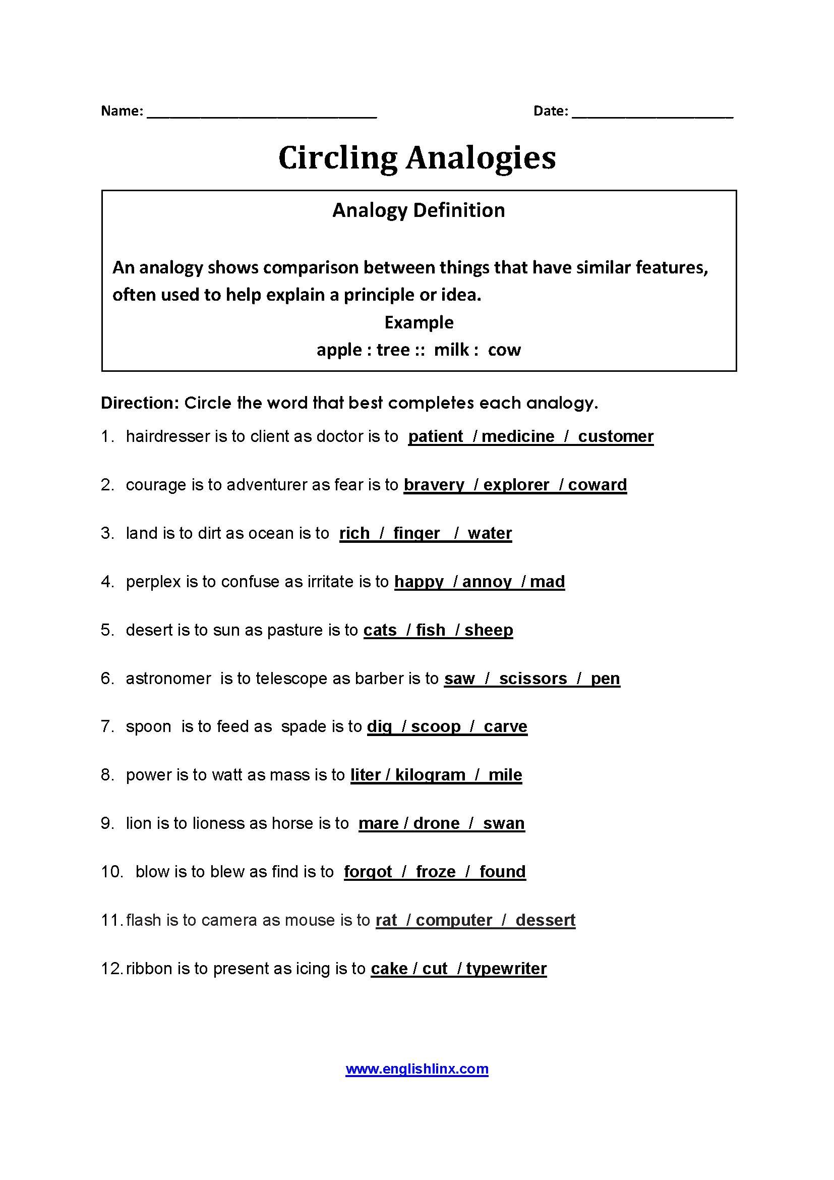 Englishlinx Analogy Worksheets