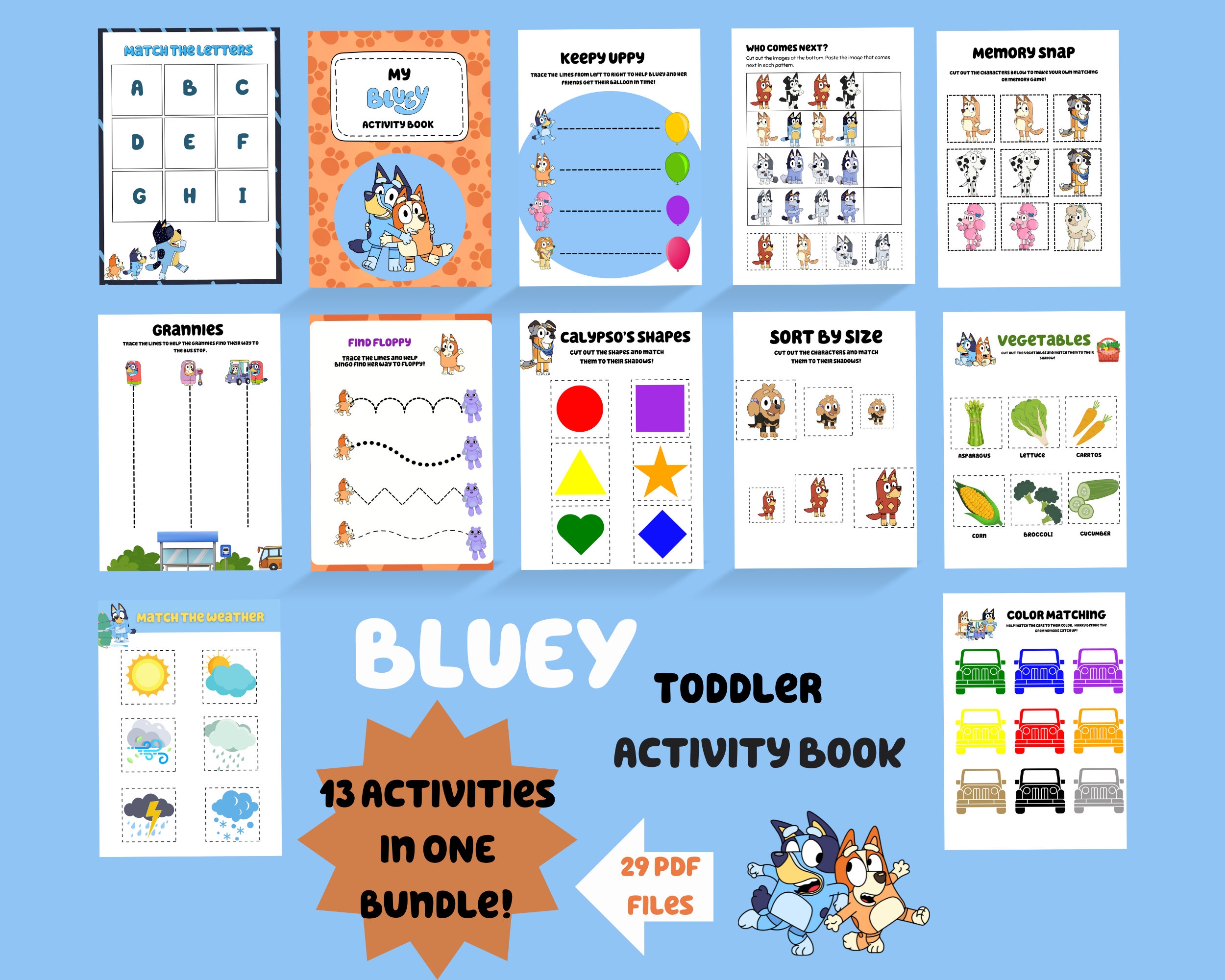 Bluey Activity Book Printable Preschool U0026 Toddler Learning Binder Bluey Busy Book Bluey Activites Pre writing Color shape Match Etsy