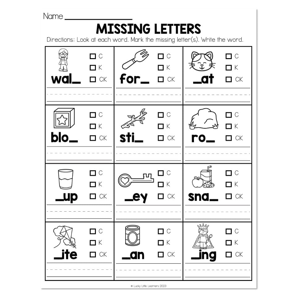 Phonics Worksheet C K Or CK Missing Letters Lucky Little