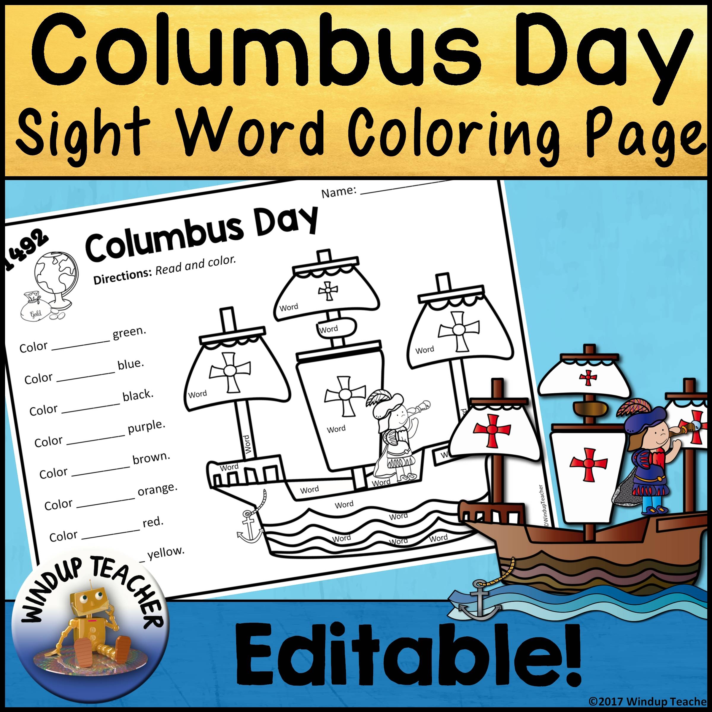 Columbus Day Sight Word Printable Activity Sheet Editable