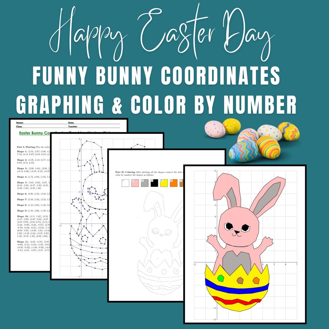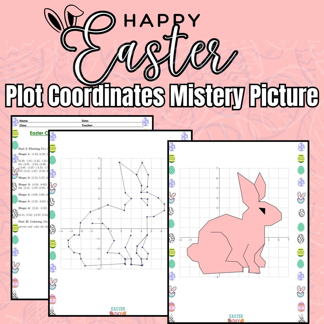 Easter Bunny Spring Coordinate Plane Mystery Graphing Picture Plotting U0026 Coloring Activity Math Geometry Printable Worksheets 4 Quadrants Etsy