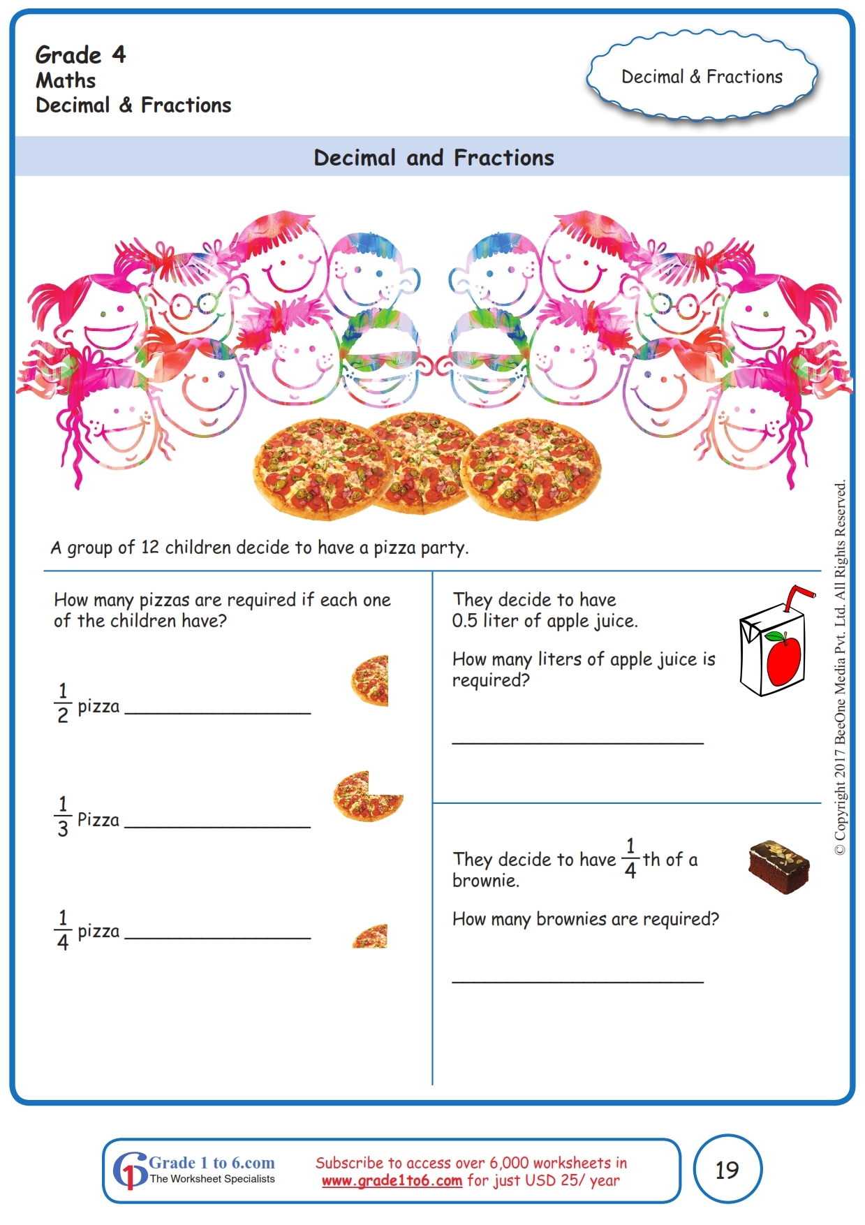 Decimal Word Problem Worksheet Grade1to6