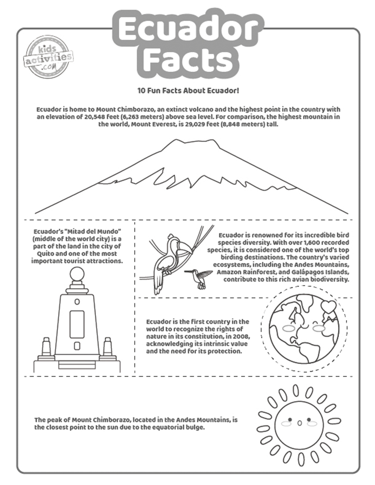 From word searches and crossword puzzles to coloring pages and fact sheets, our collection of free printable Ecuador worksheets has something for everyone. Your students will have a blast learning about Ecuador while completing these fun and educational activities.