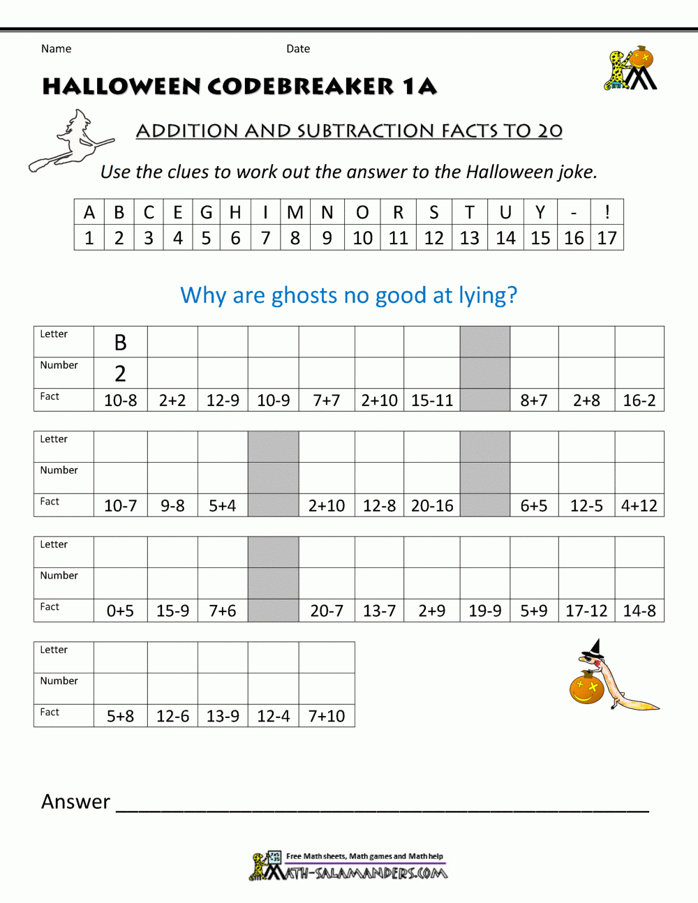 Math Halloween Worksheets PDF Free Download