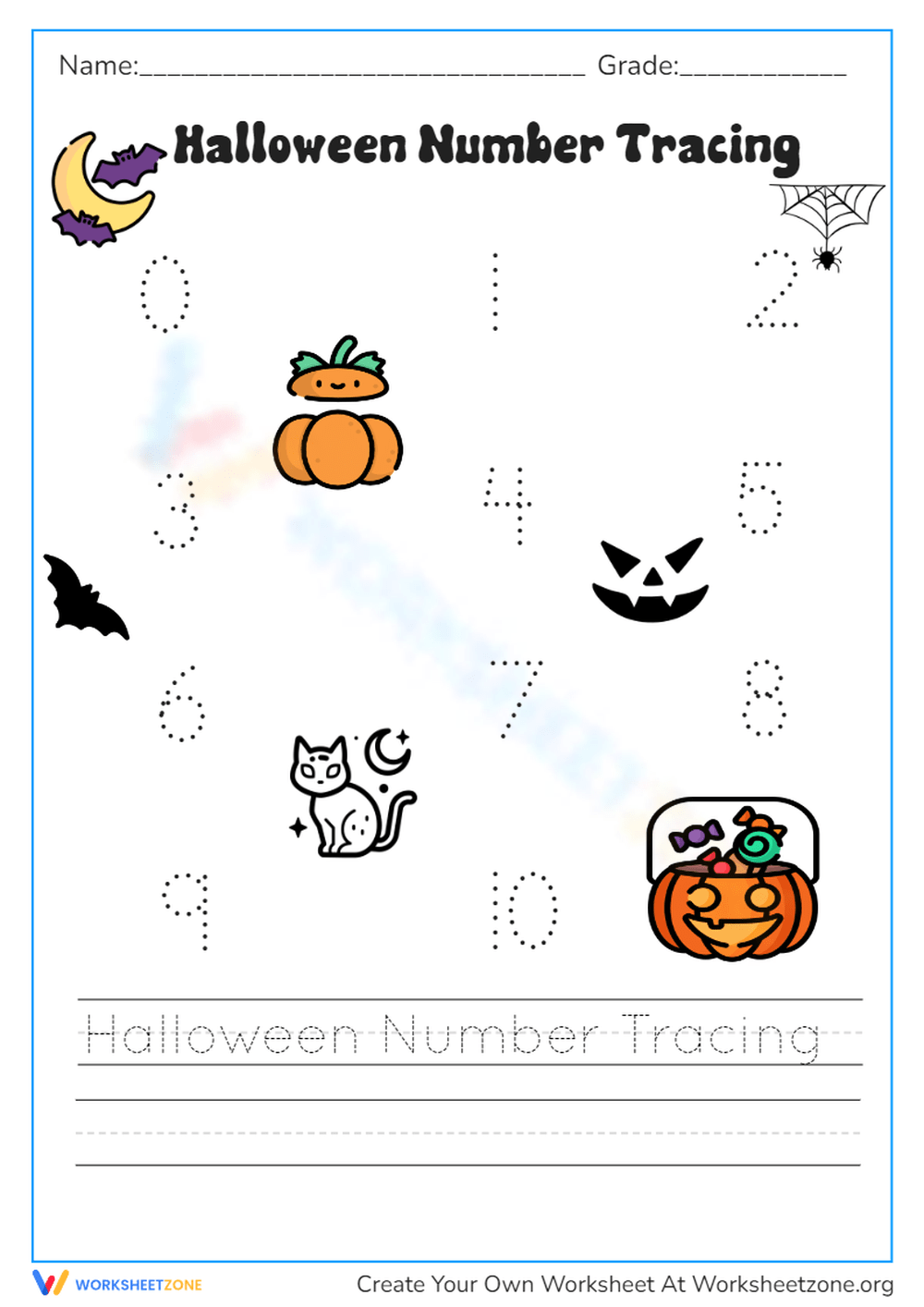 Simply download and print out the worksheet, grab some crayons or markers, and let the Halloween fun begin! Your kids will love tracing and writing numbers while getting into the festive spirit.