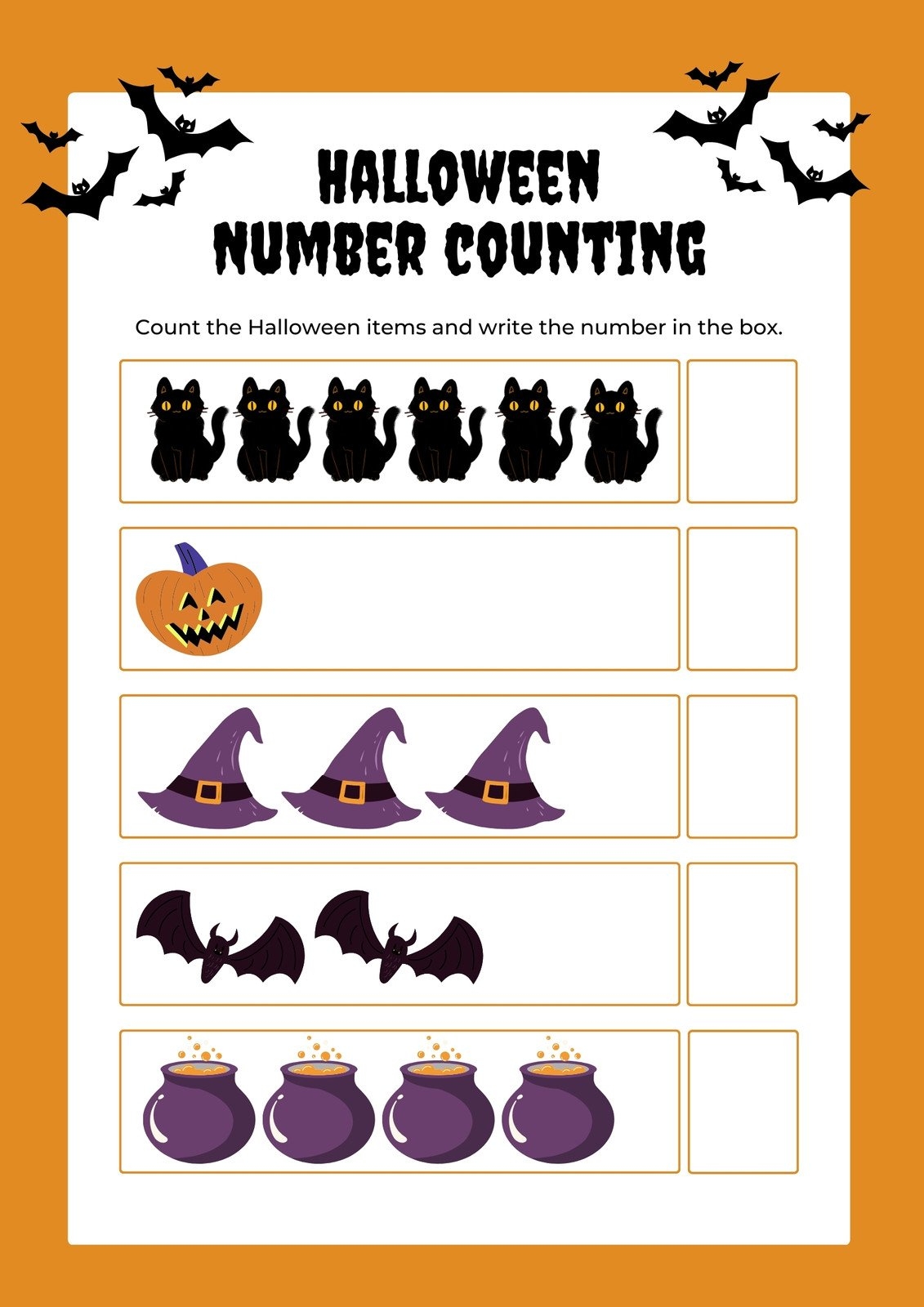 This spooky-themed worksheet is perfect for practicing number recognition and handwriting skills. Your child will have a blast counting and writing numbers with ghosts, pumpkins, and bats!