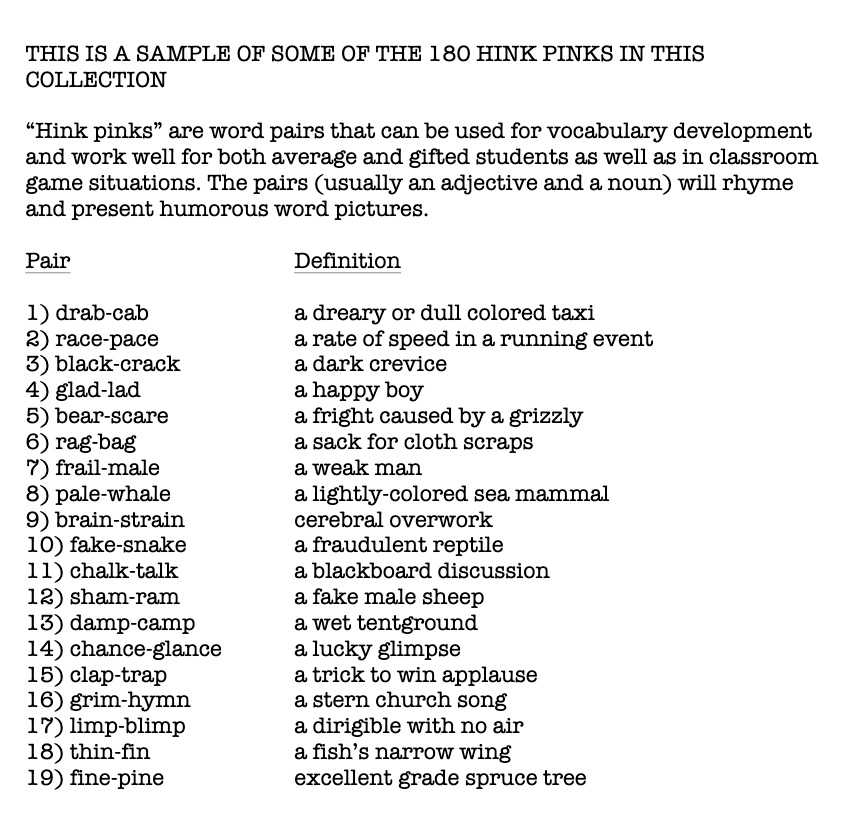Free Printable Hink Pinks Worksheets