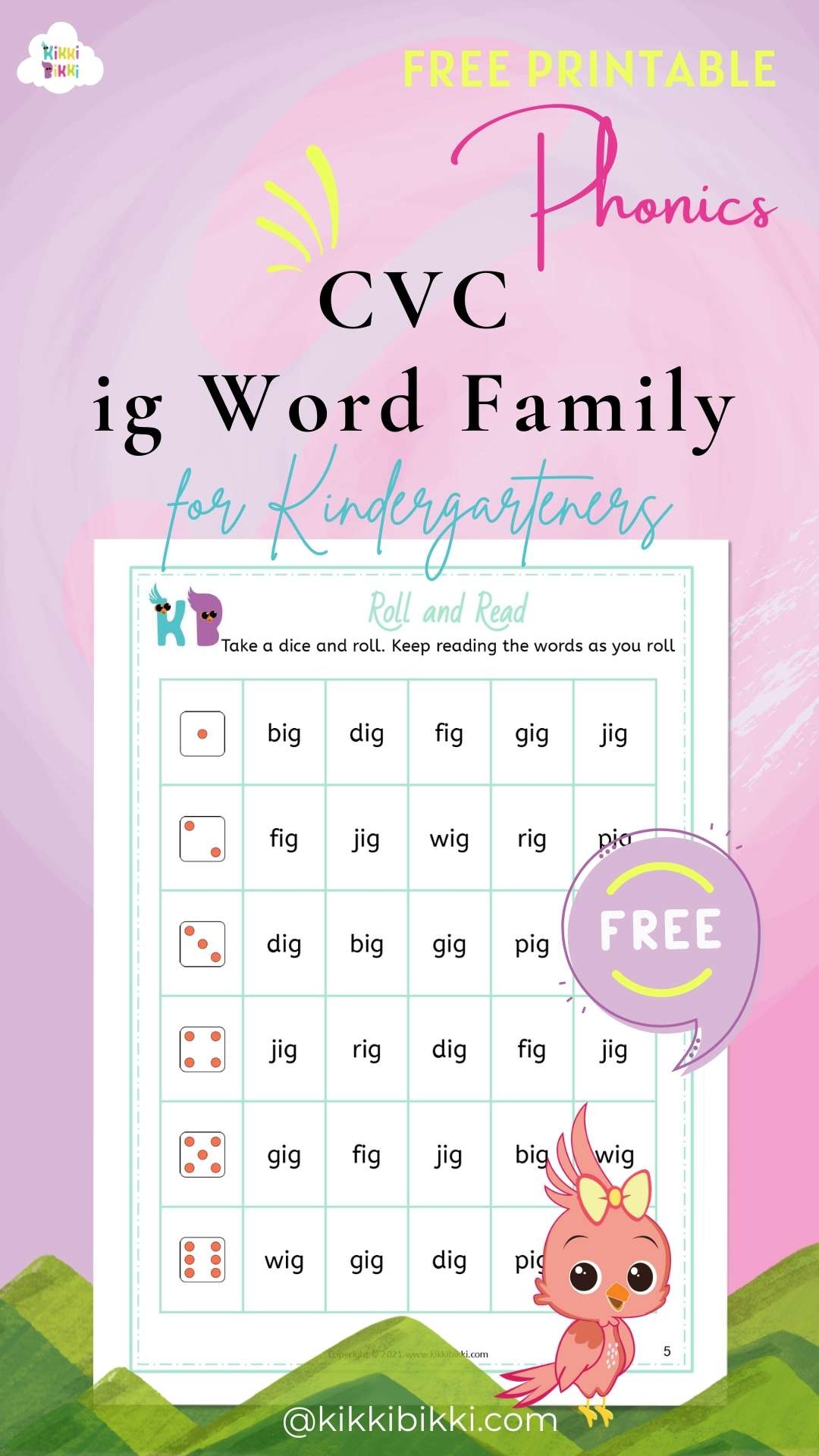 FREE Printable ig Word Family Worksheets For Kindergarten