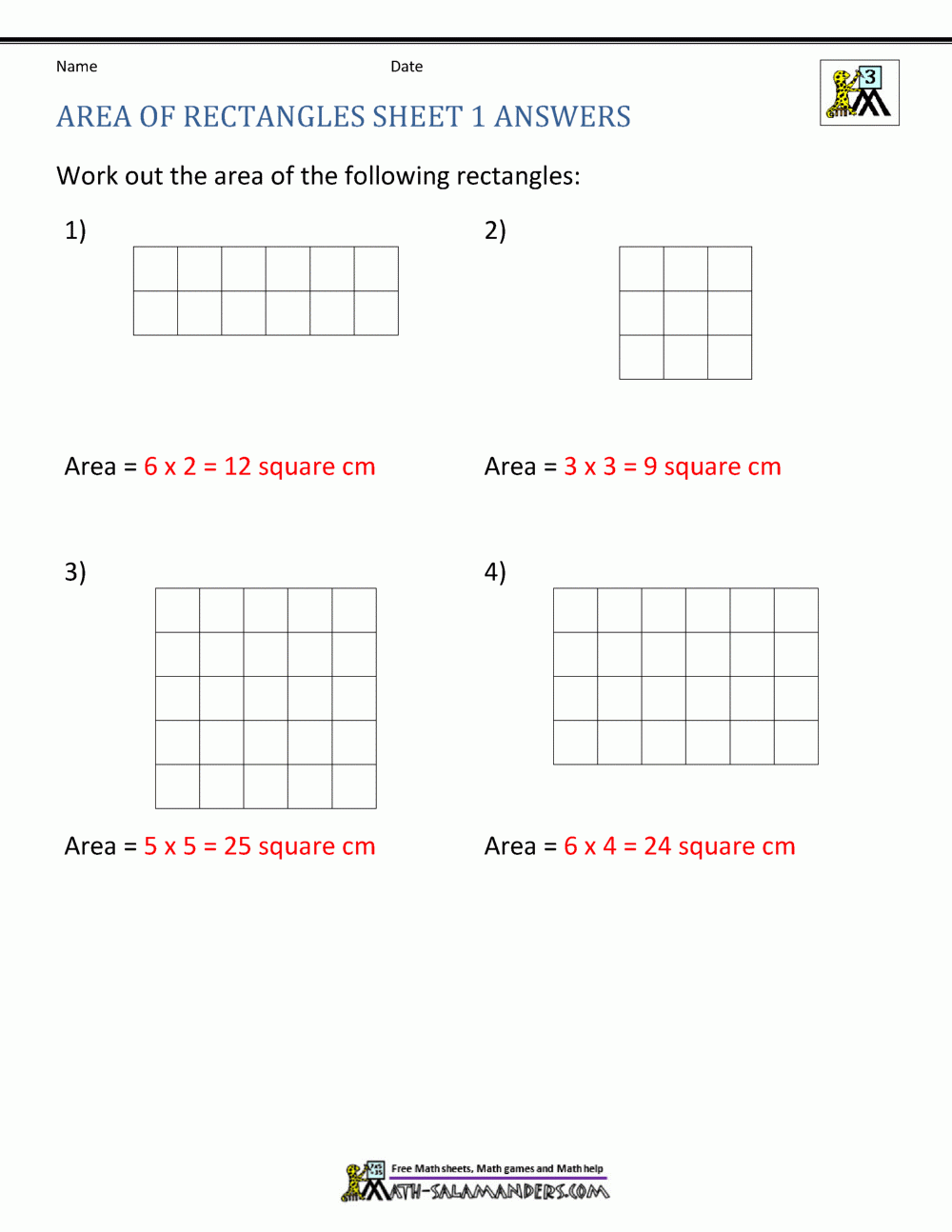 Free Printable Math Worksheets Area