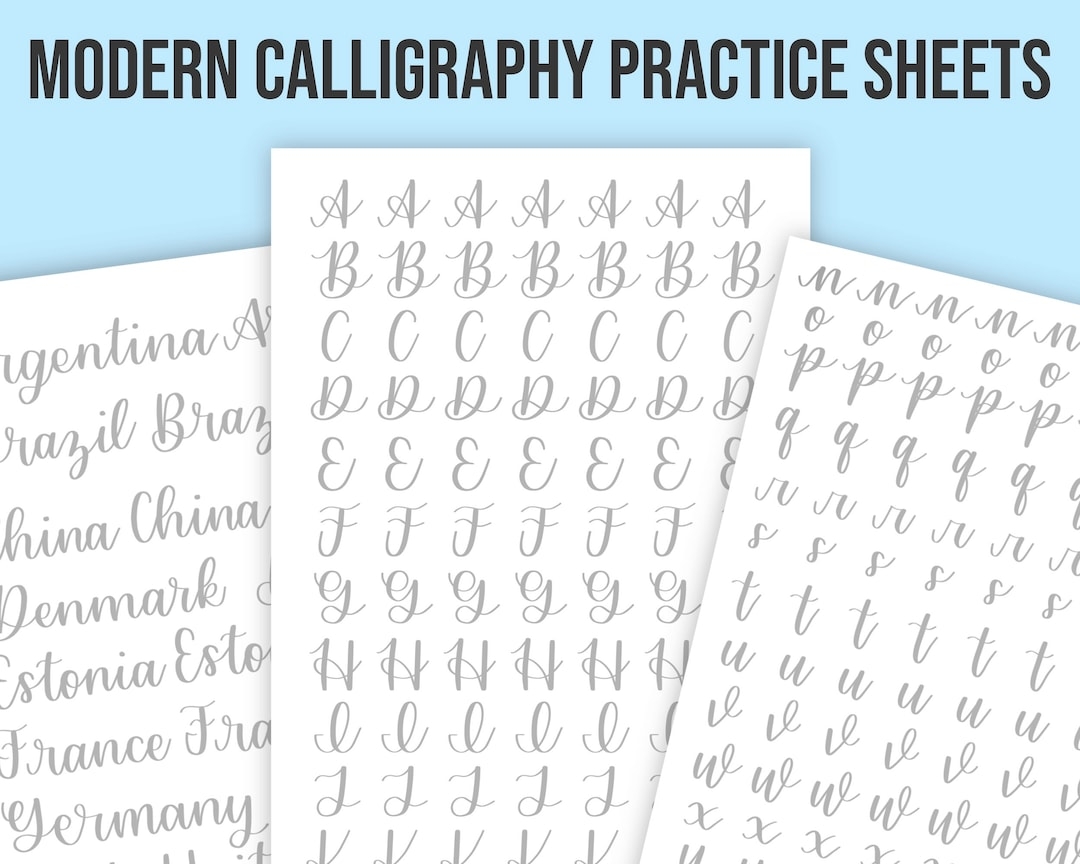 Modern Calligraphy Practice Sheet Template Printable U0026 Digital Download Etsy