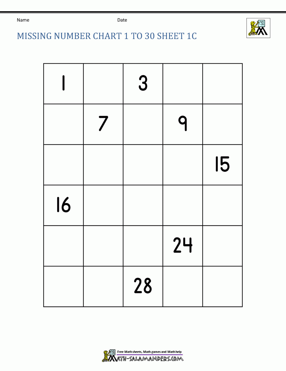 Free Number Chart 1 30 Worksheets Library