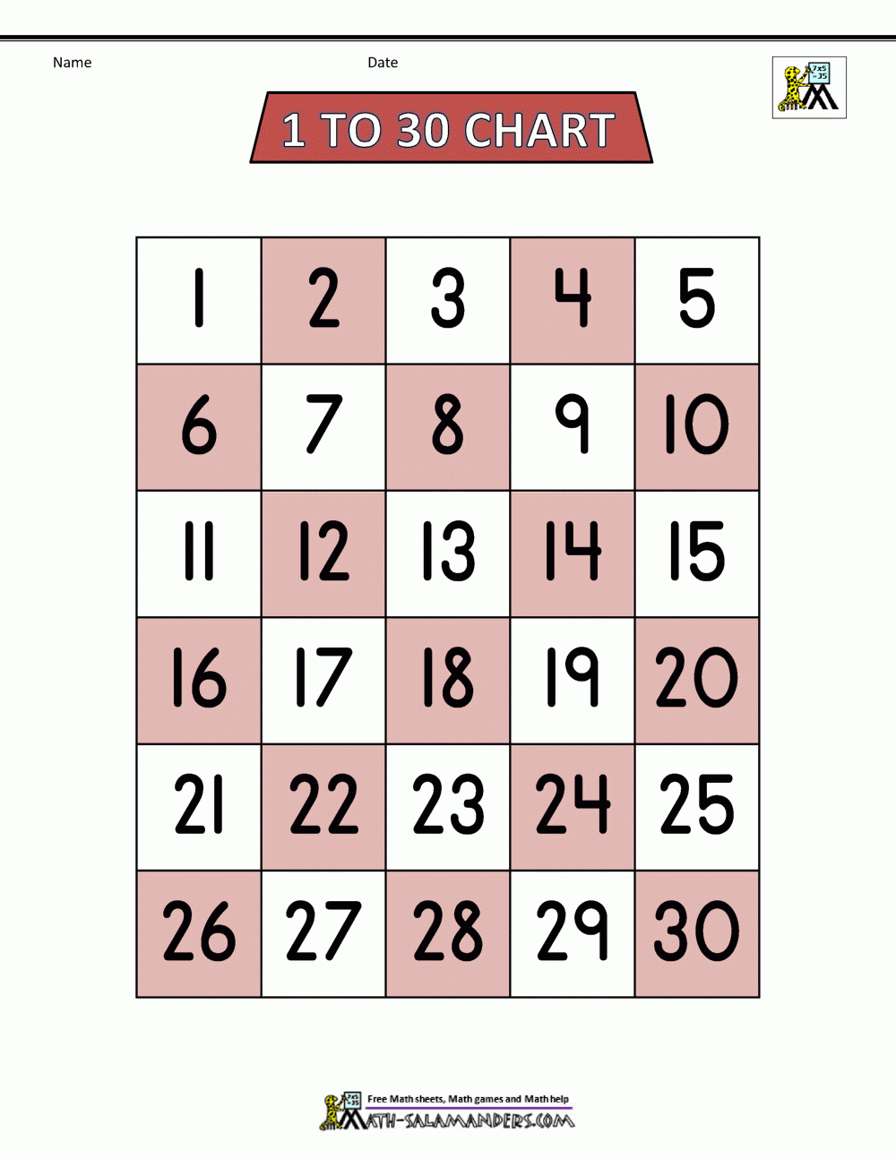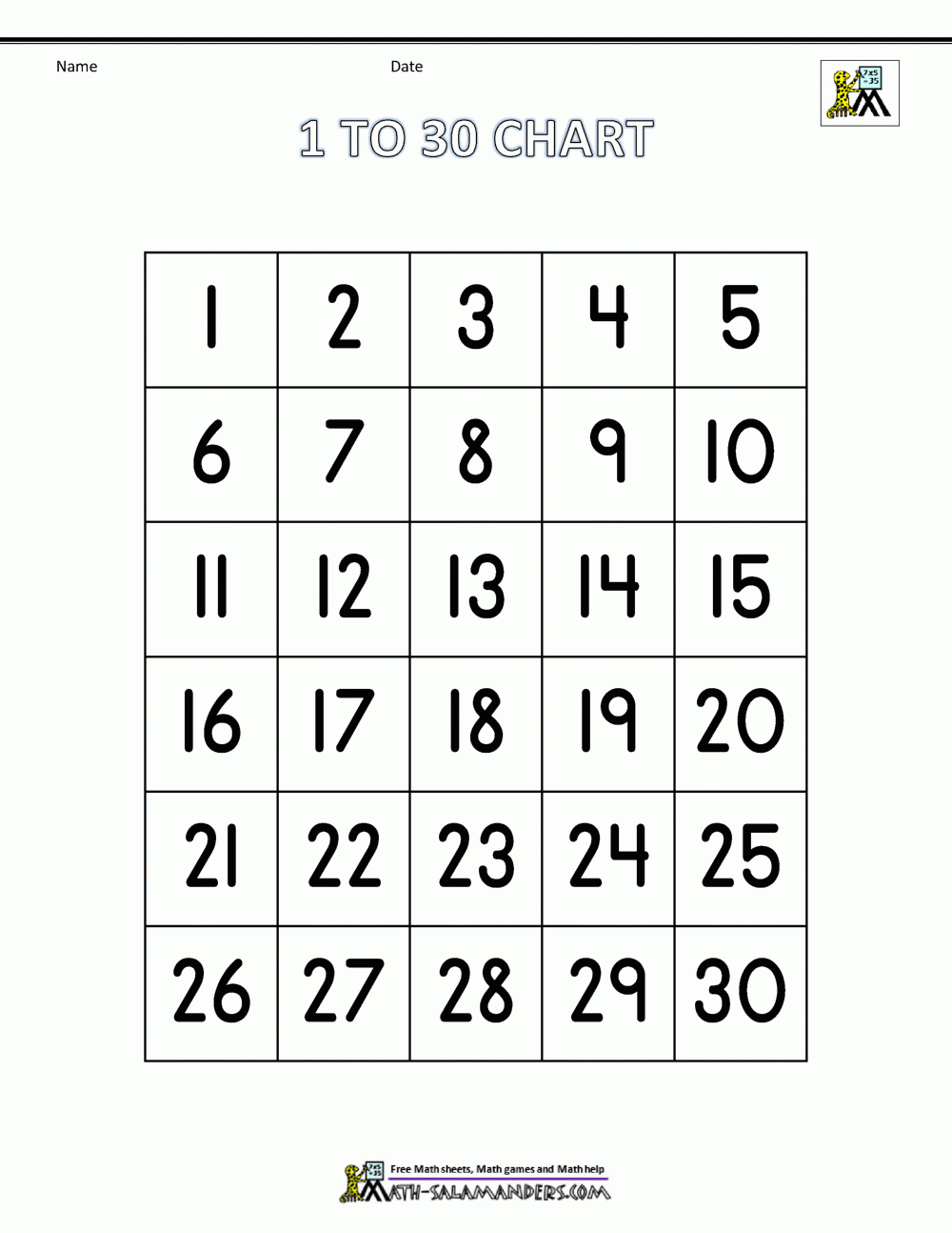 Free Number Chart 1 30
