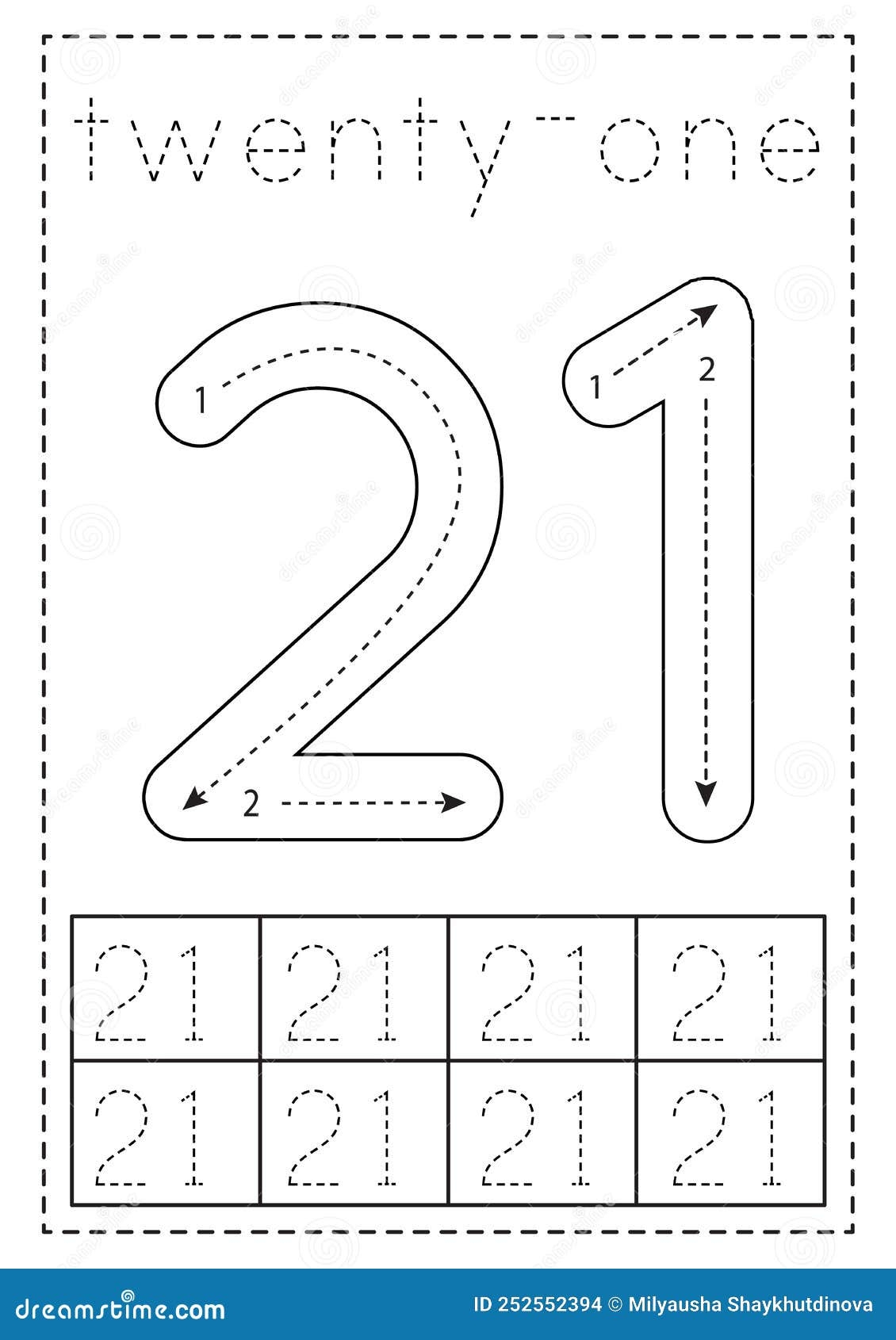 Tracing Number Twenty One Preschool Worksheet Black And White Stock Vector Illustration Of Page Handwriting 252552394