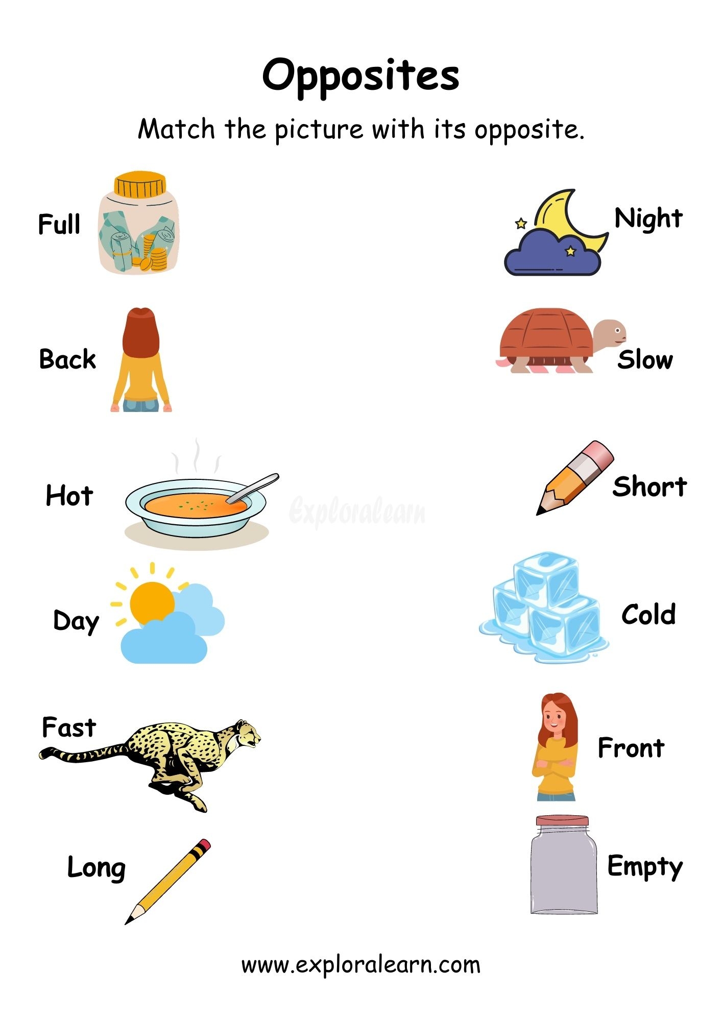 Opposite words, also known as antonyms, are words that have opposite meanings. By matching these words together, kids can improve their language skills and expand their vocabulary in a fun and interactive way.