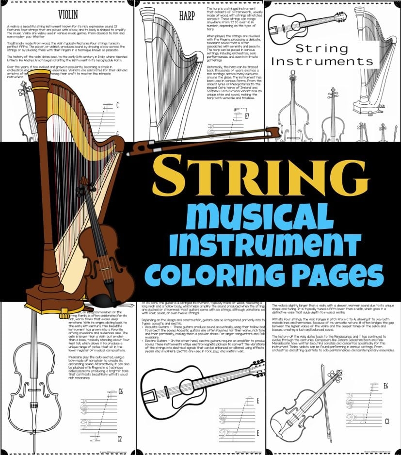 Musical Instruments Coloring Pages BUNDLE All 5 Instrument Families 123 Homeschool 4 Me