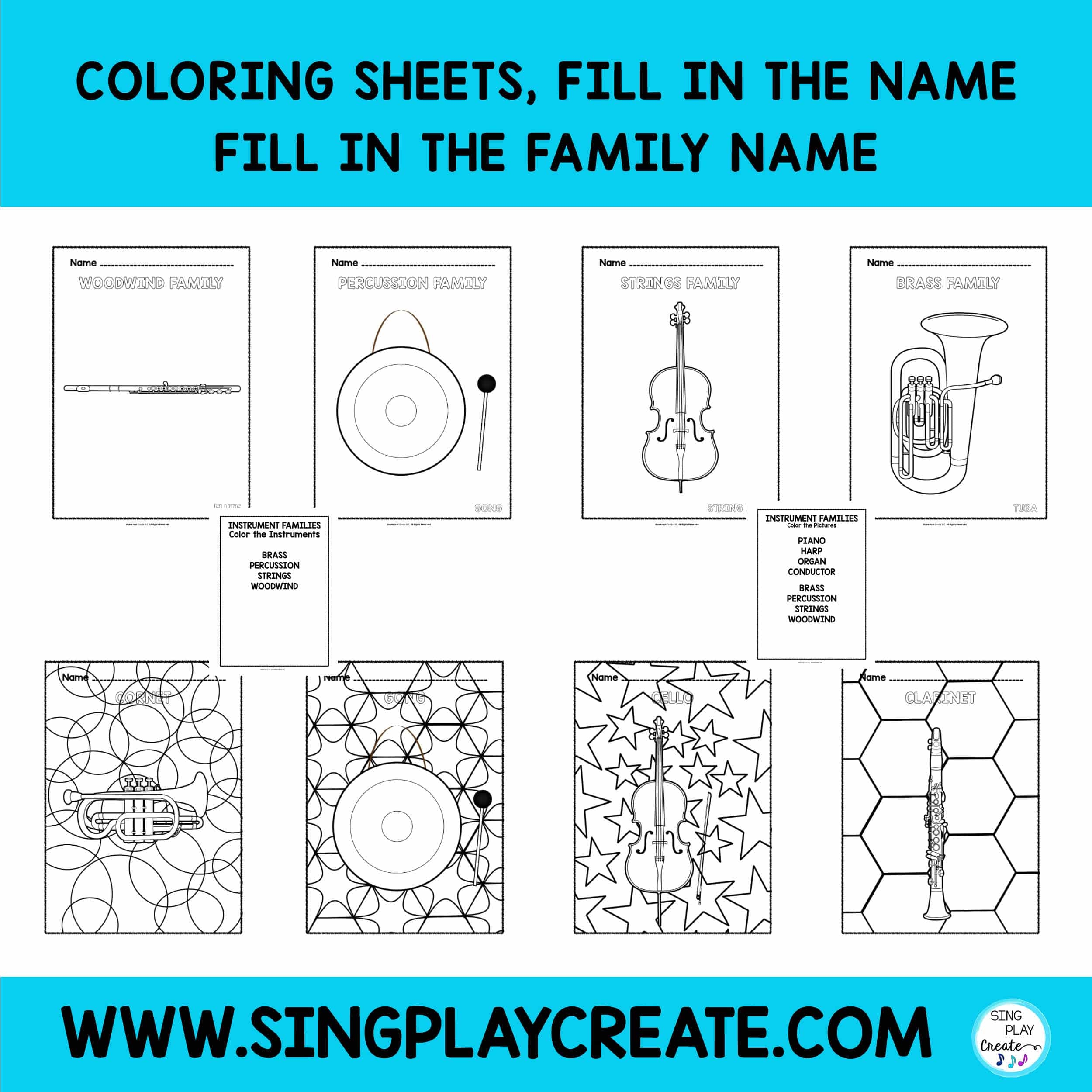 Orchestra Instrument Family Coloring Pages U0026 Worksheets No Prep Activity For Music Education Sing Play Create
