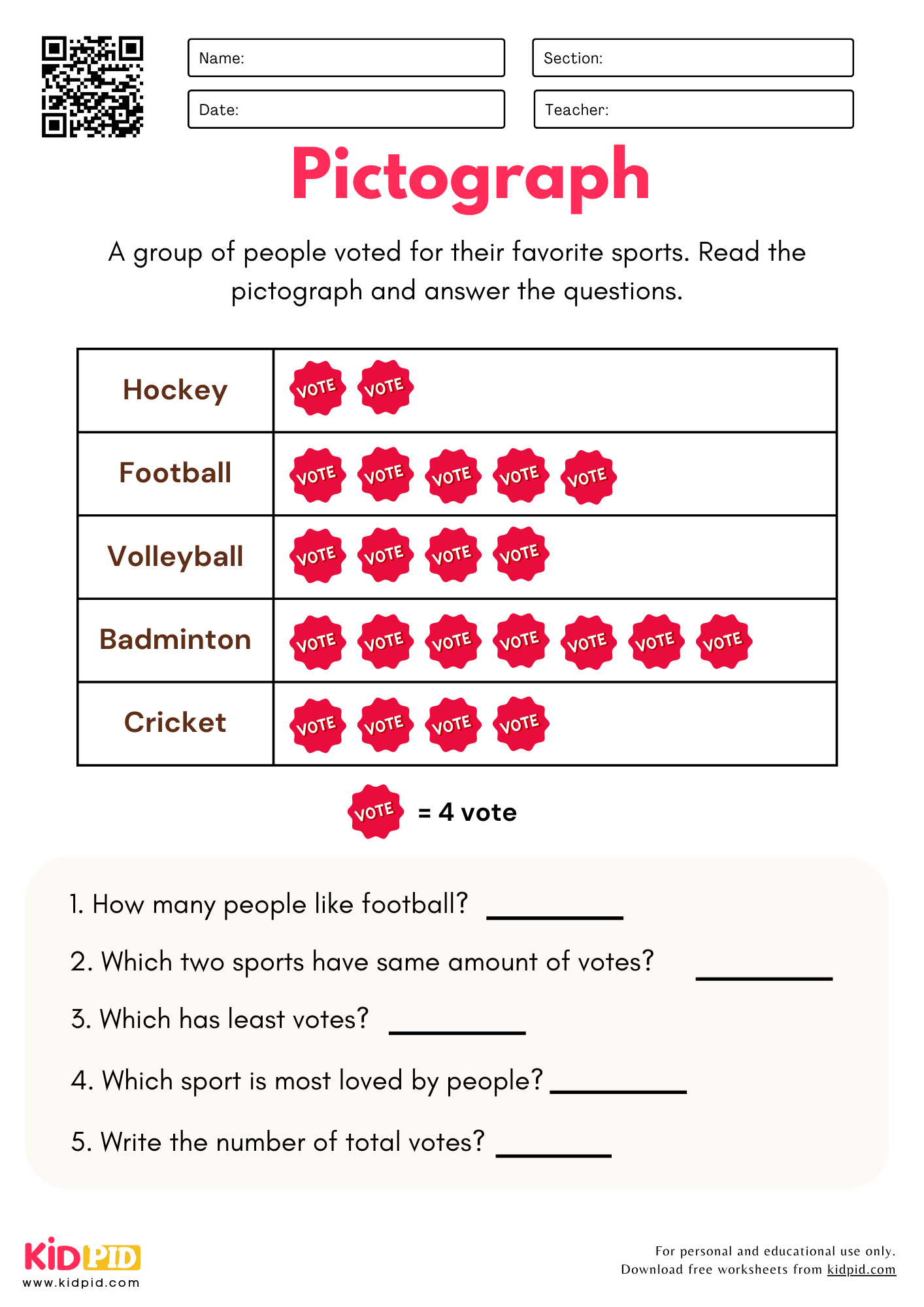 With pictograph worksheets, children can improve their understanding of data representation and interpretation. These worksheets feature colorful images and symbols that make learning more enjoyable and interactive.