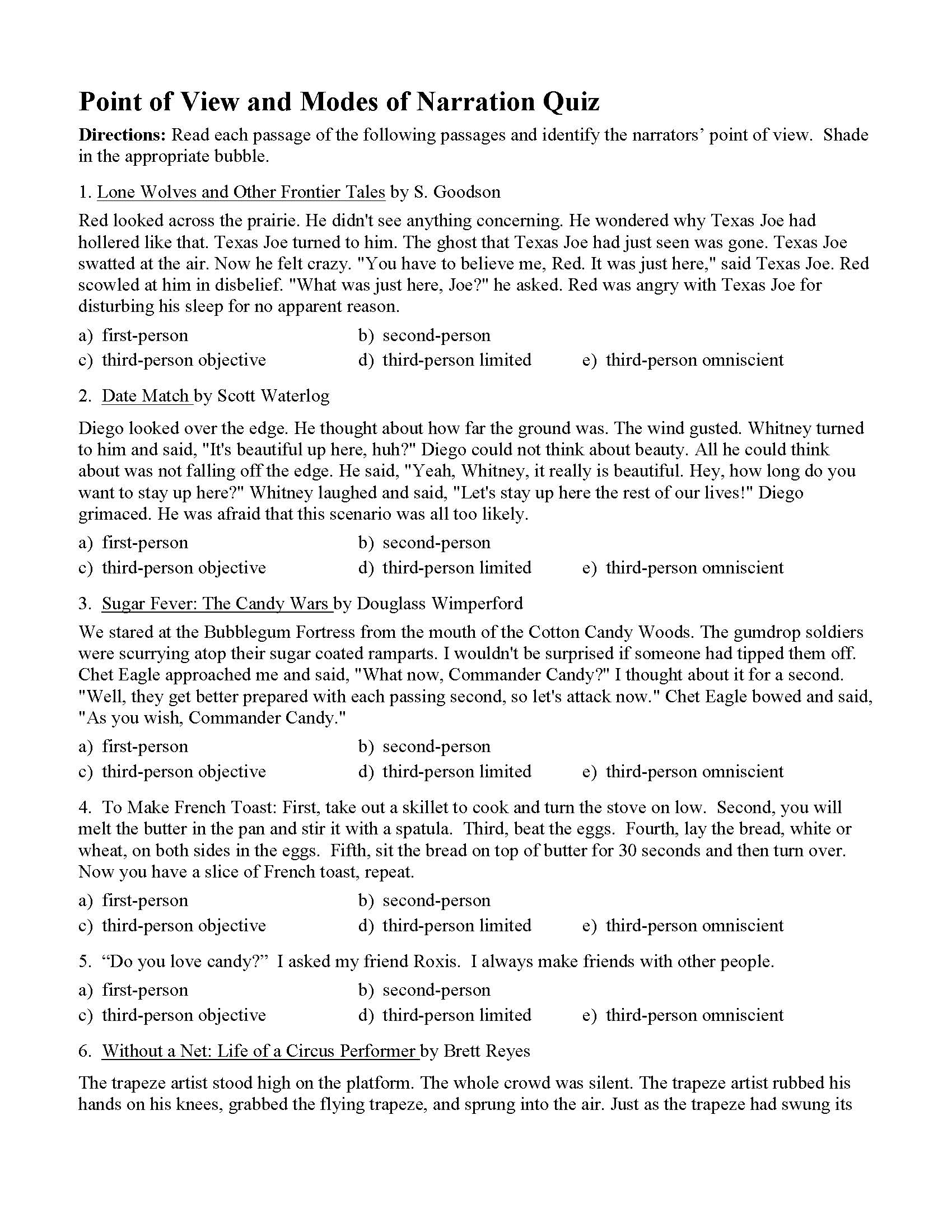 Point Of View Worksheets Reading Activities