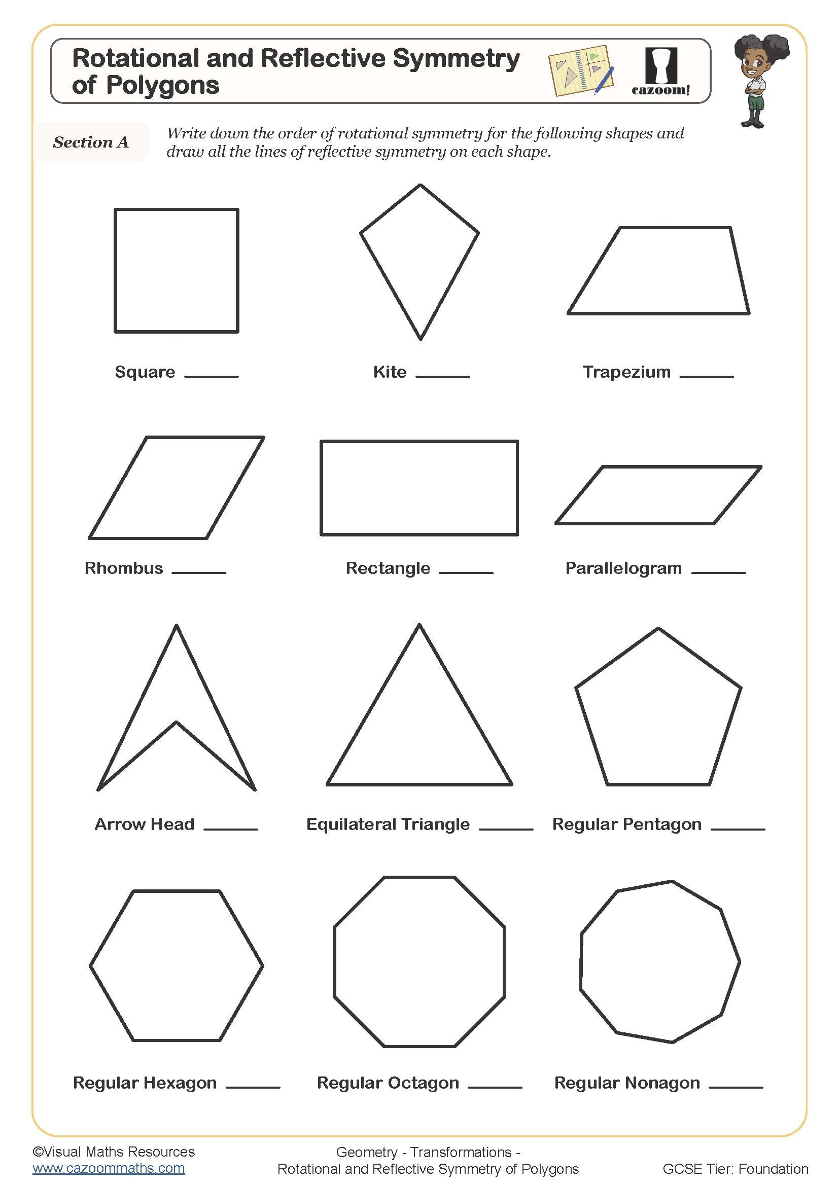 Rotational And Refelctive Symmetry Of Polygons Worksheet Printable Maths Worksheets
