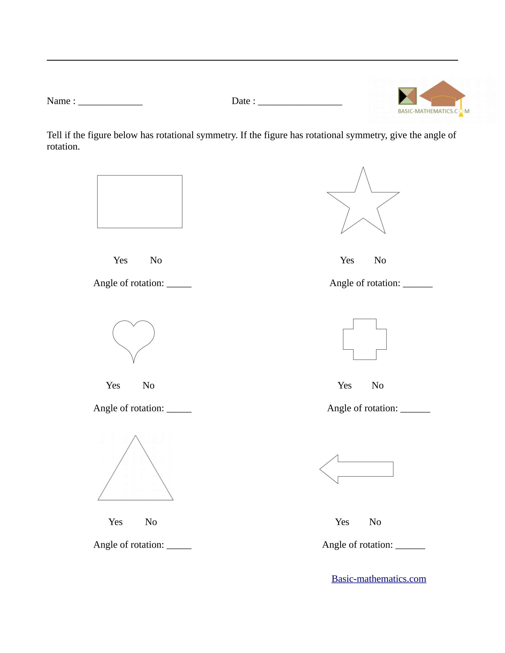 Rotational symmetry is an important concept in mathematics that helps students understand the symmetry of shapes and patterns. Our worksheets cover a variety of topics related to rotational symmetry, including identifying symmetric shapes, drawing lines of symmetry, and solving symmetry puzzles.