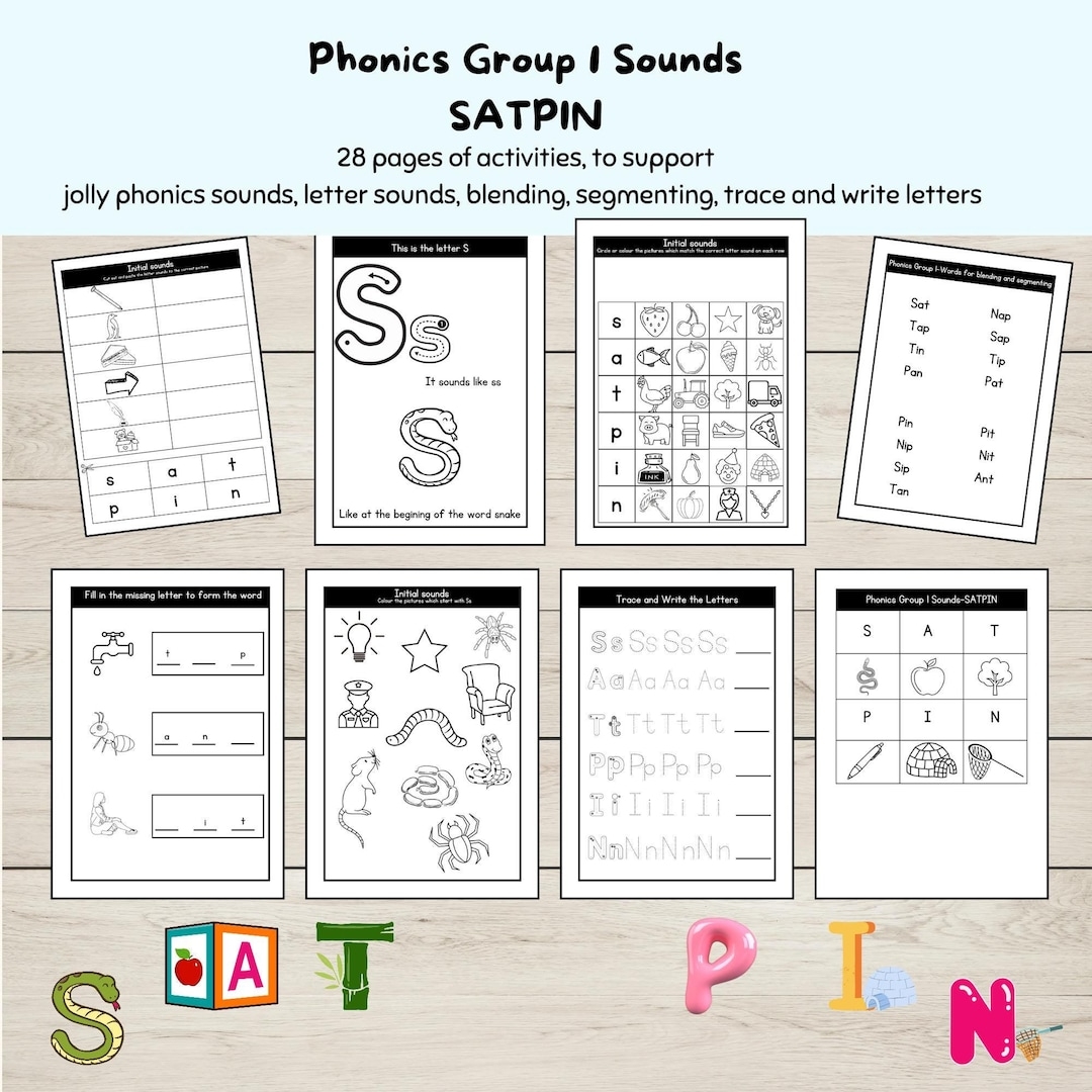 SATPIN Worksheets Letter Sounds CVC Words Printable Group 1 Jolly Phonics Activities Learning Activity Bundle Etsy