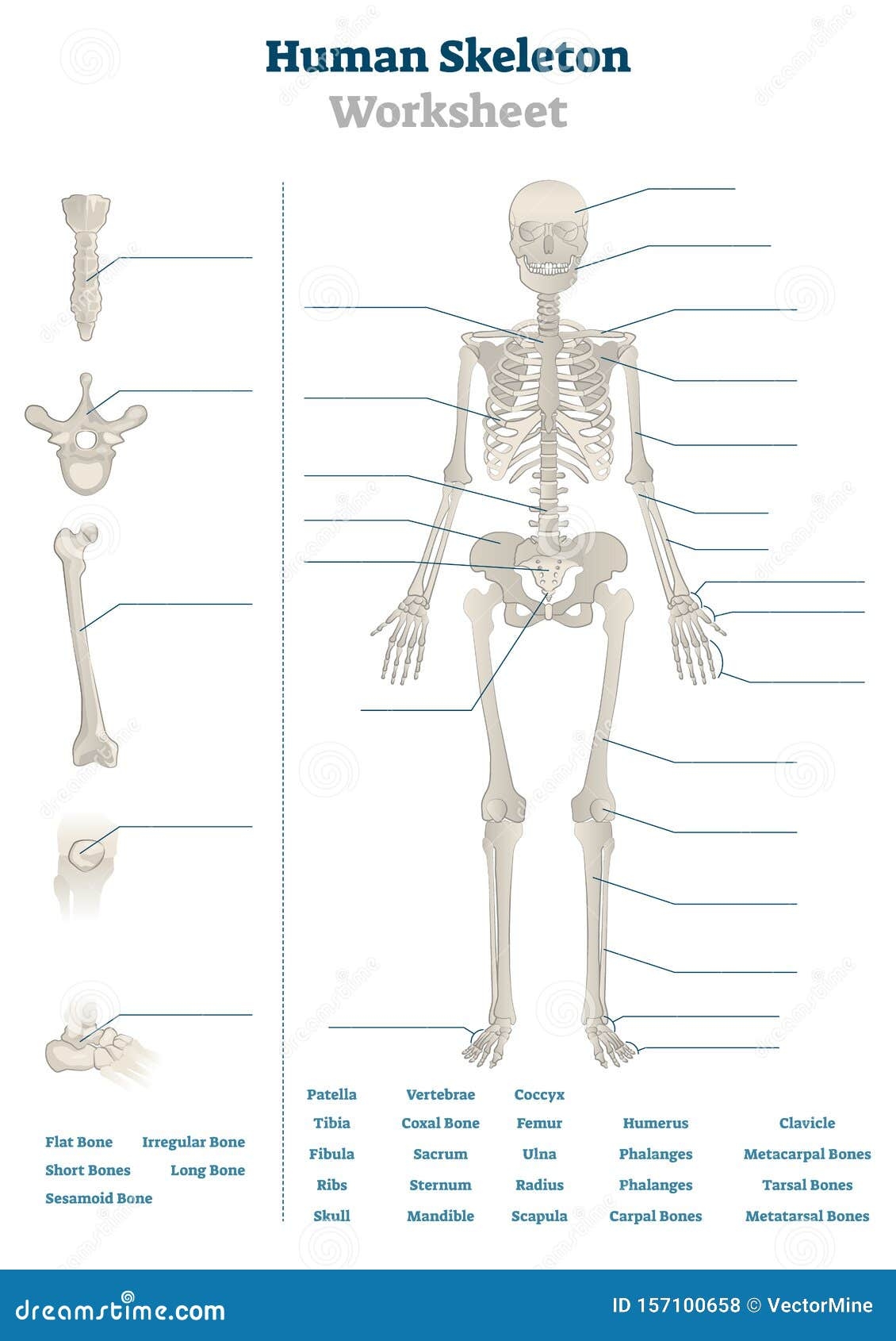 Human Skeleton Worksheet Vector Illustration Blank Educational Bone Scheme Stock Vector Illustration Of Diagram Body 157100658