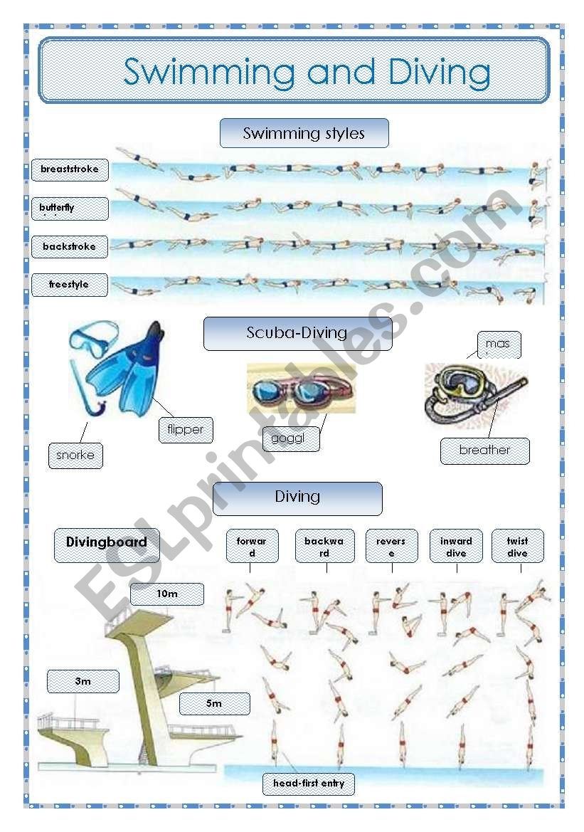 Swimming And Diving pictionary ESL Worksheet By Oppilif