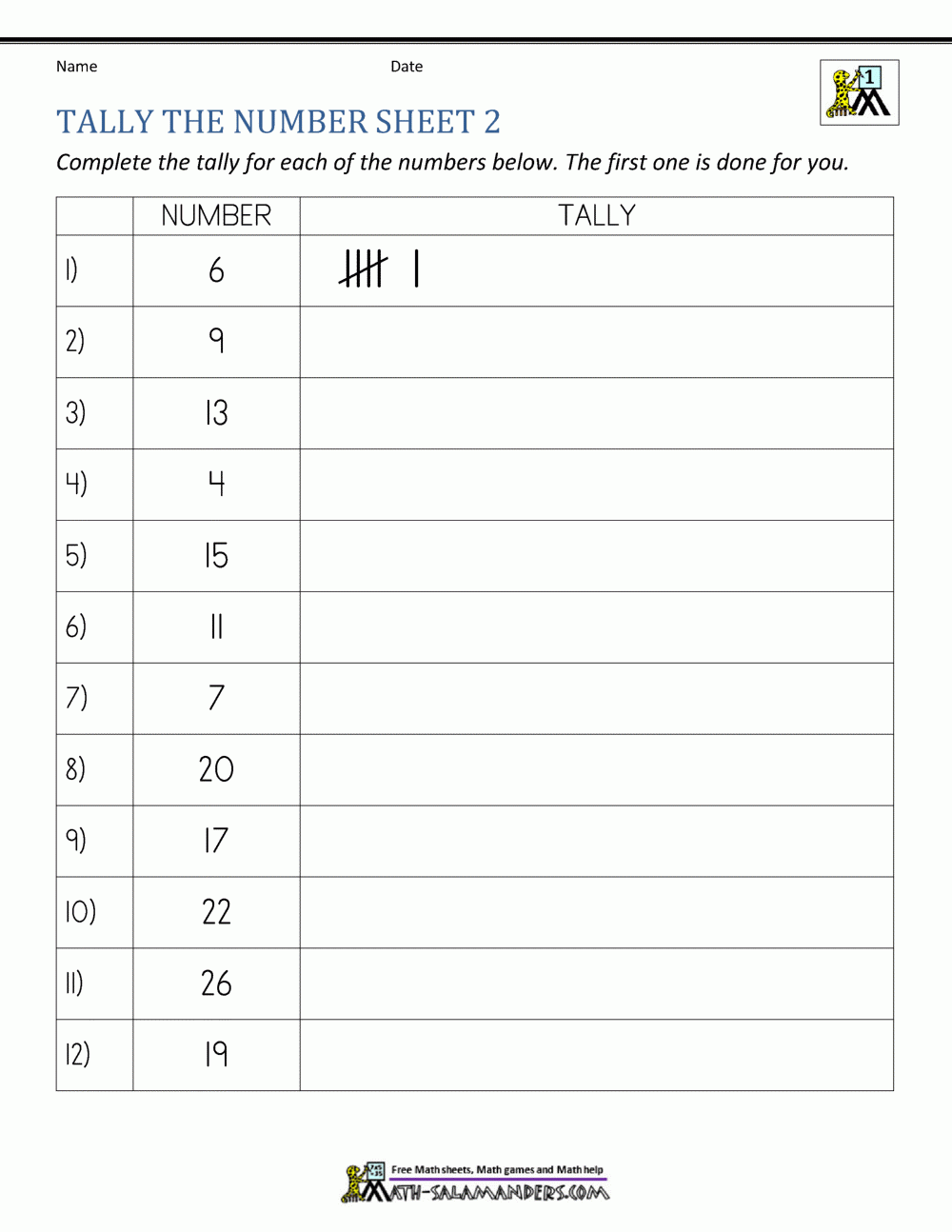Free Printable Tally Mark Worksheets