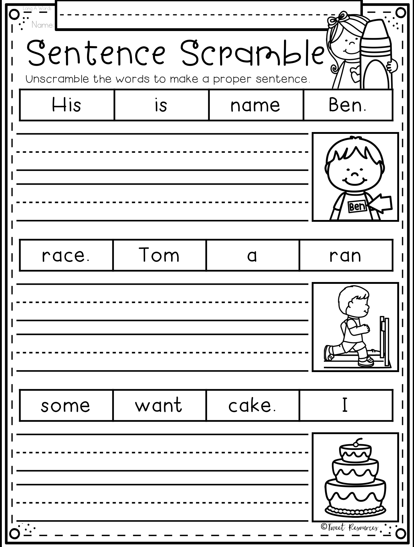 FREE Printable Sentence Scramble Worksheets For Kids