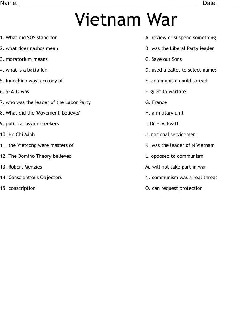 Vietnam War Worksheet WordMint