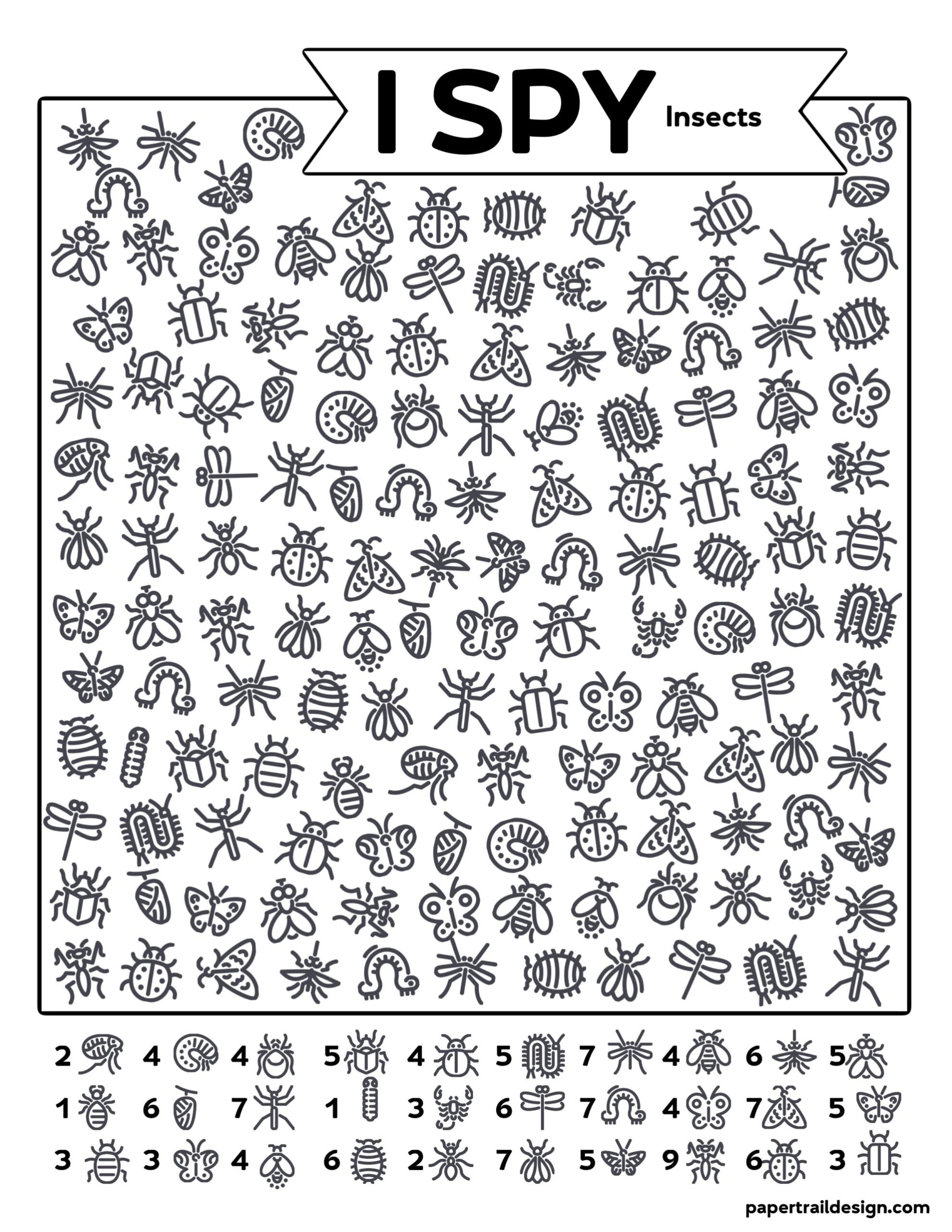 Free Printable I Spy Insects Activity Paper Trail Design
