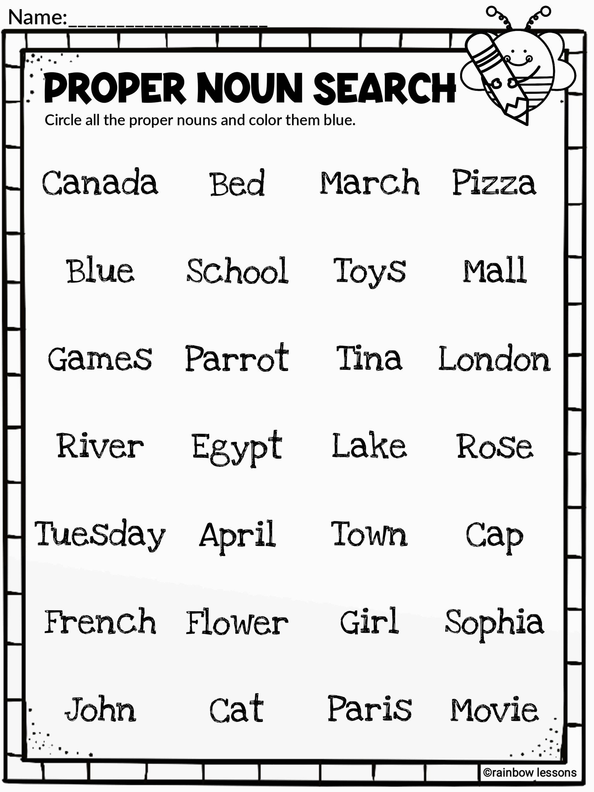 Proper Nouns Grammar Worksheets