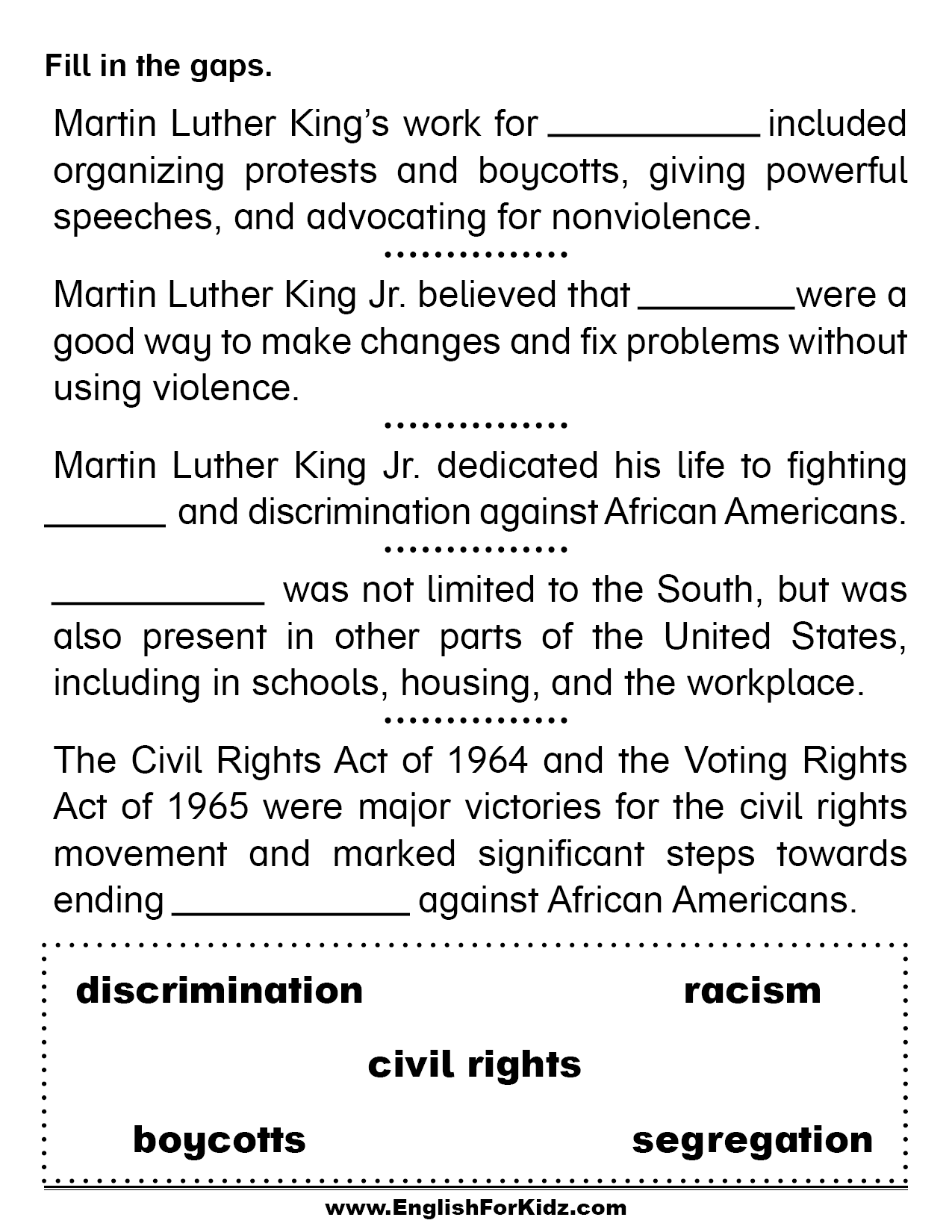Martin Luther King Worksheets Free Download Learn Grow Aspire