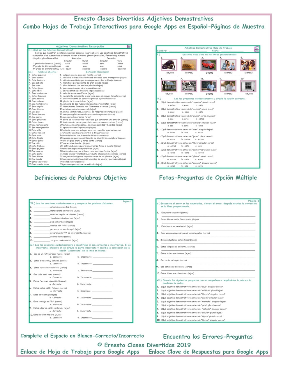 Spanish Demonstrative Adjectives Los Demostrativos Speaking Activities Worksheets Library