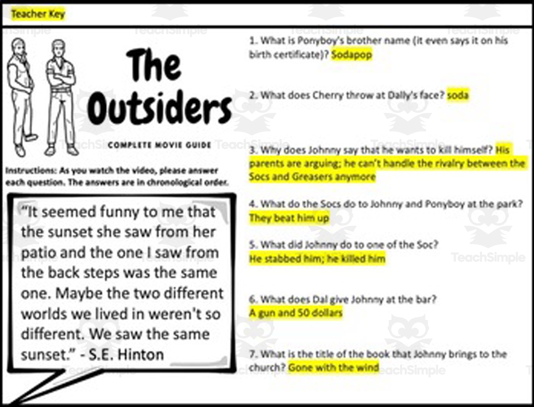 The Outsiders Free Printable Worksheets
