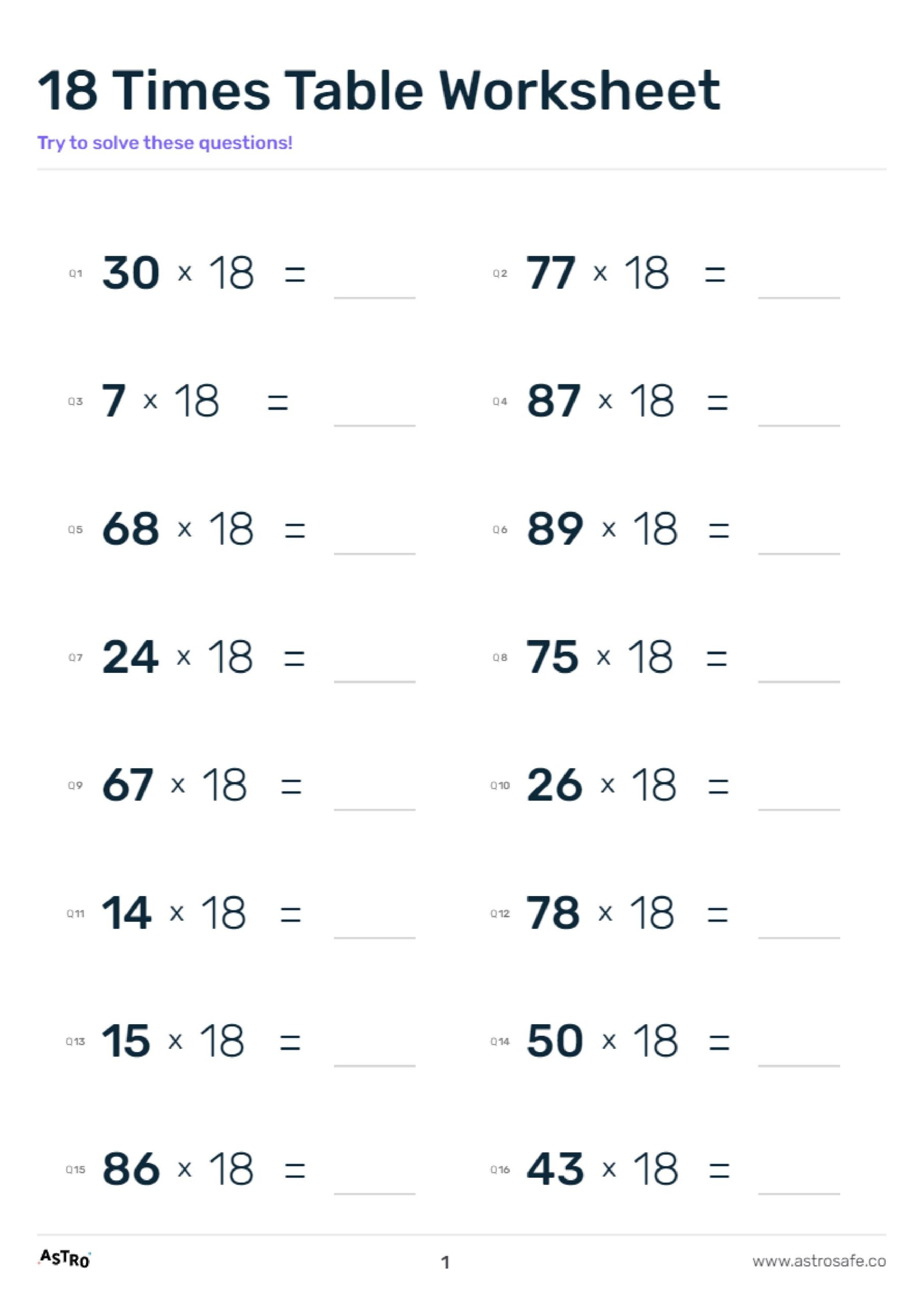 From simple multiplication problems to more challenging ones, our time tables worksheets cover a wide range of skills. Your child can practice their times tables from 1 to 12 and improve their math fluency in no time.
